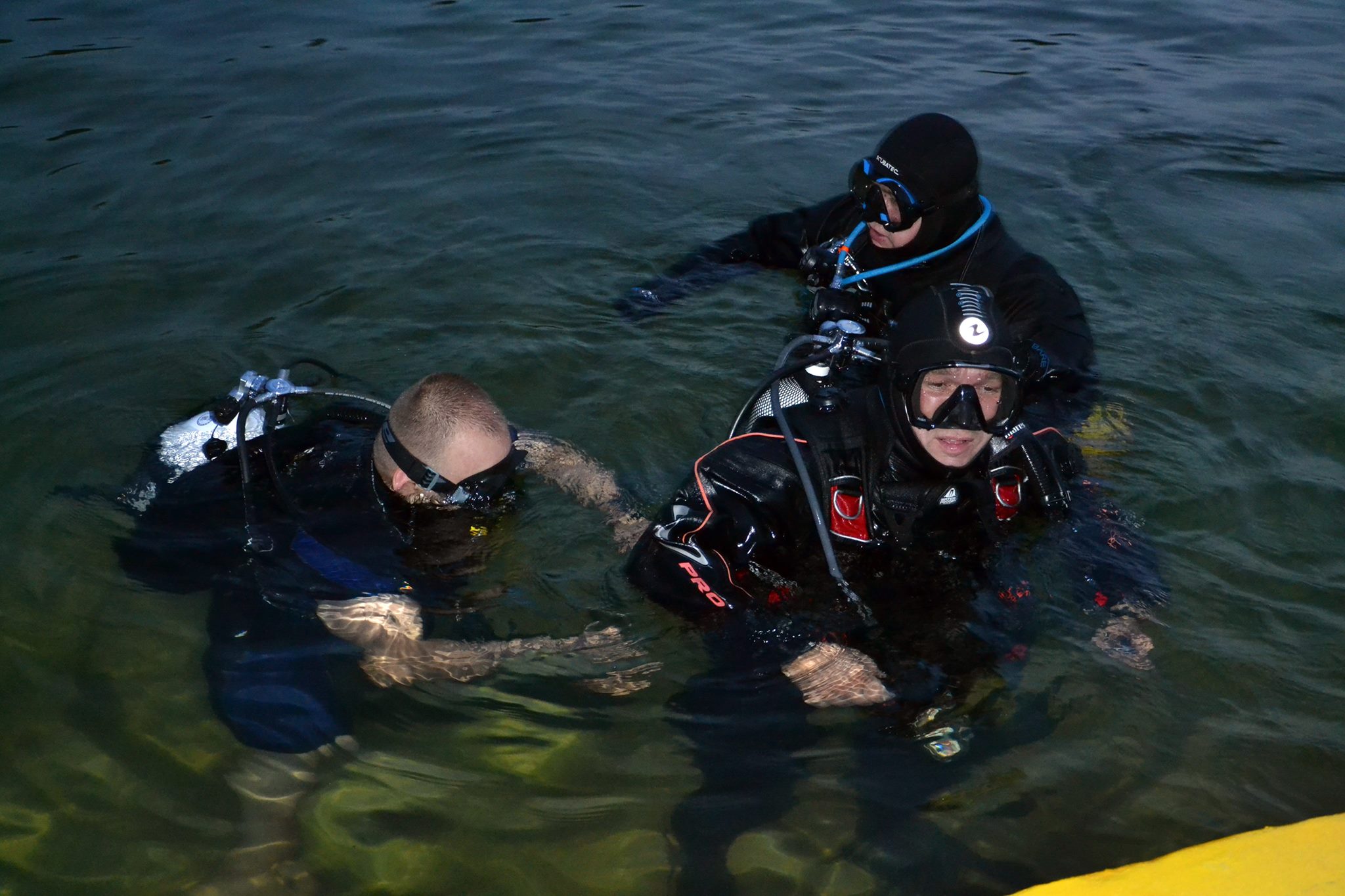 Wszyscy świetnie się bawili. Dodatkowo dwie osoby odbywające kurs OWD mogły pierwszy raz sprawdzić swoje umiejętności w półmroku - ich uśmiechy mówią same za siebie. Każdy z uczestników docenił możliwość ćwiczenia na płytkiej i bespiecznej wodzie basenowej. Na pewno będziemy to powtarzać cyklicznie. Basen w Słubicach to miejsce historyczne co dodatkowo dodaje uroku takim ćwiczeniom.