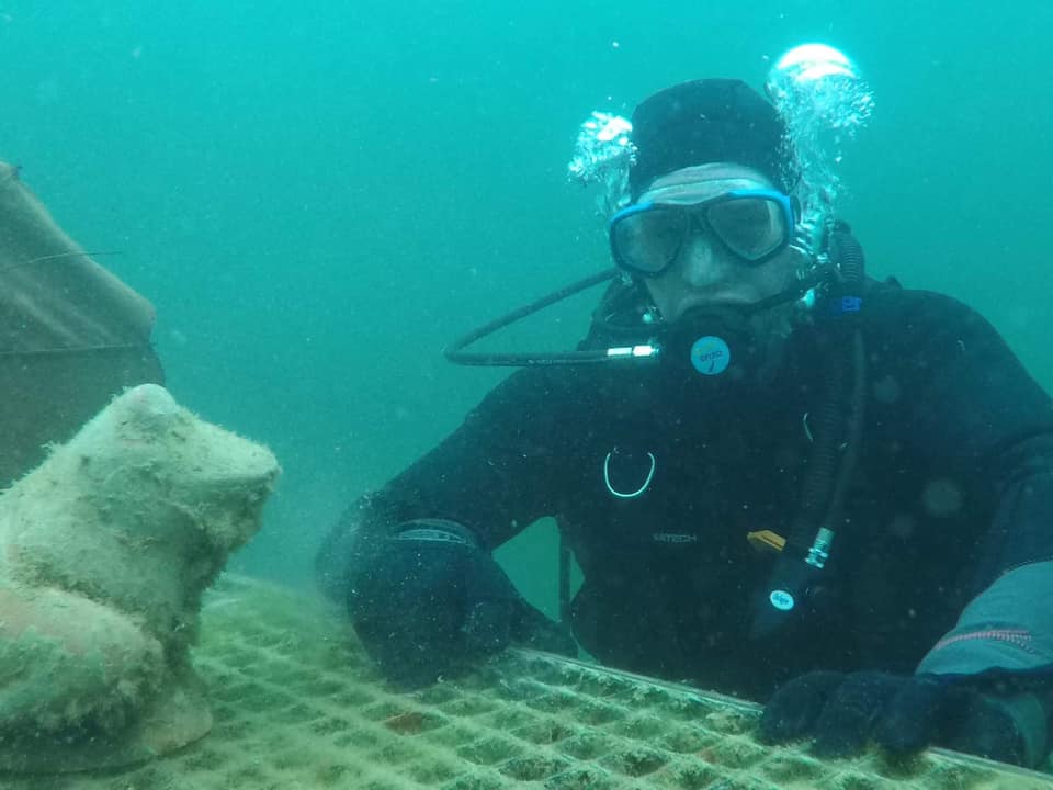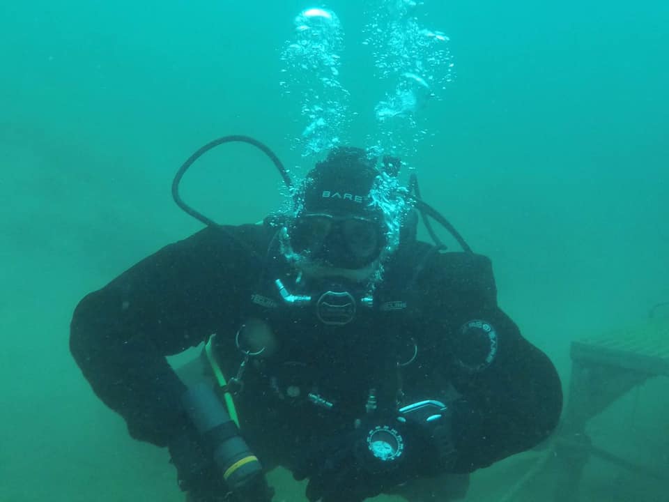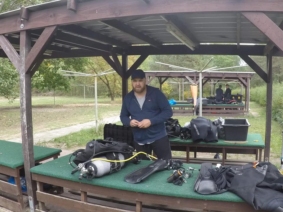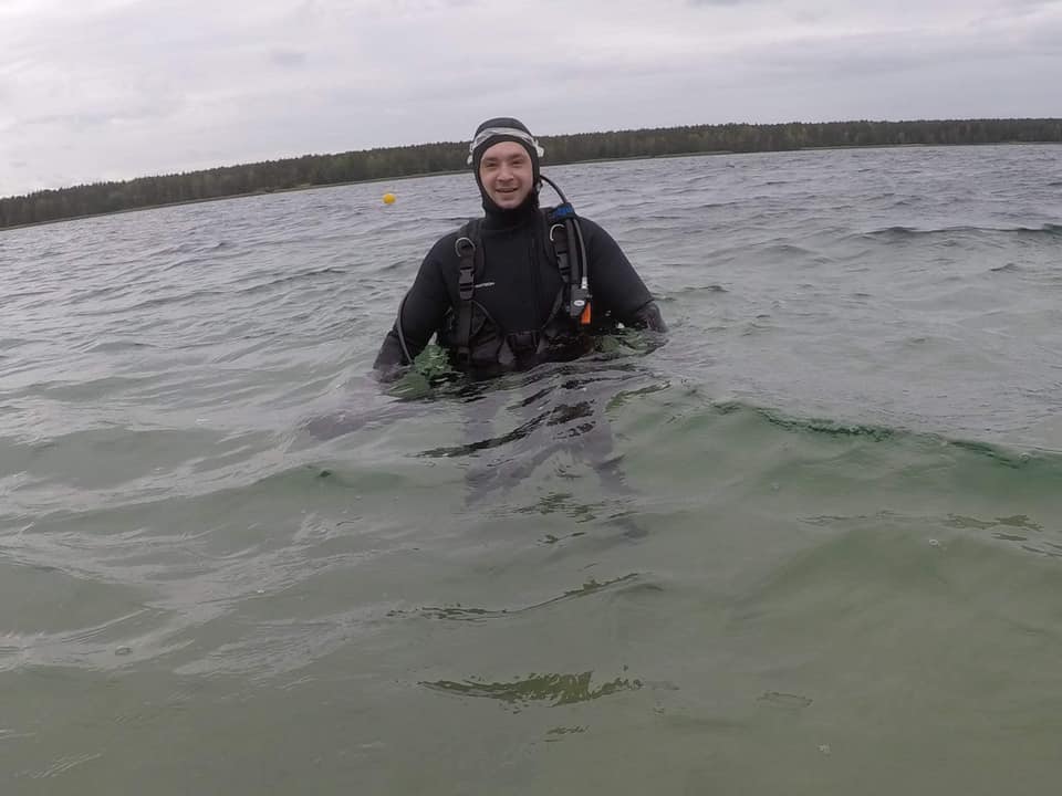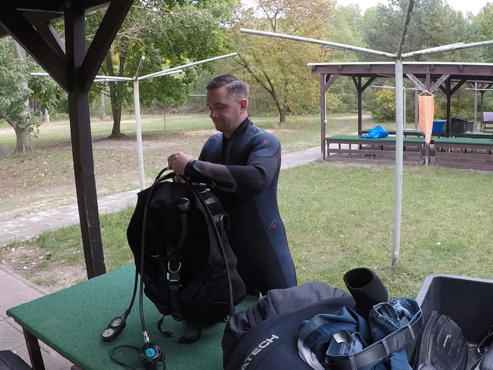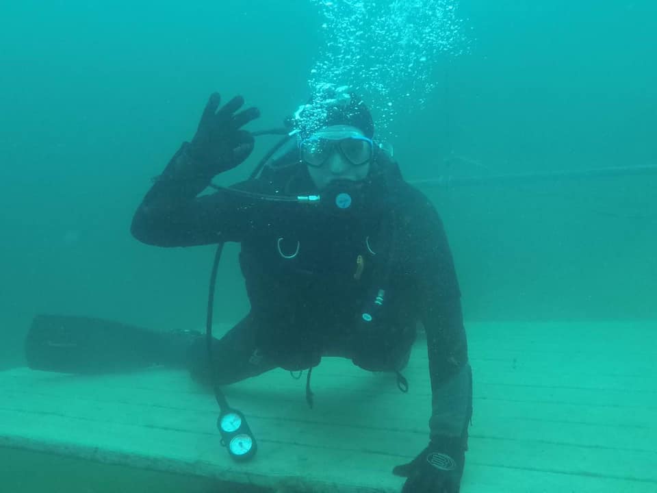 Michał po ukończonym kursie stawia pierwsze samodzielne kroki pod wodą.