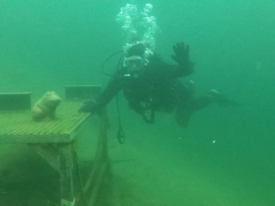 Michał po ukończonym kursie stawia pierwsze samodzielne kroki pod wodą. Na początek zaatakował Helenkę która dzisiaj była wyjątkowo przejrzysta i pozwoliła wykonać świetnego nura Pozdrawiamy!!!